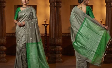 From our ancestor's looms to your wardrobe, each saree is a limited loom masterpiece woven with heart.